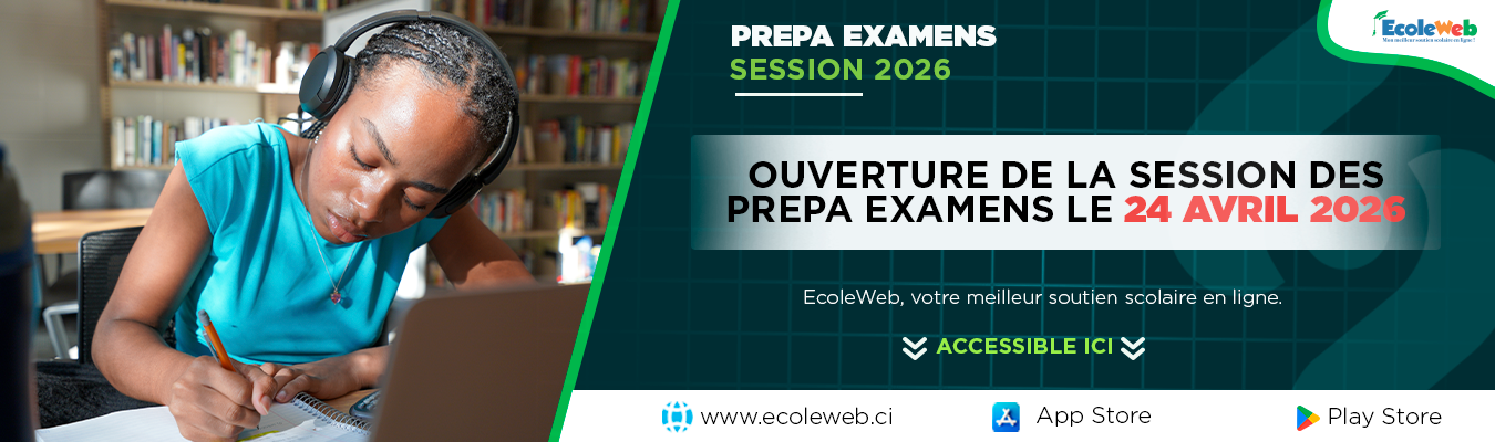 Avec EcoleWeb, Cours + Exercices + Devoirs + Examens + IA = Réussite scolaire ! C'est reparti avec ECOLEWEB ! Votre plateforme de soutien scolaire en ligne !